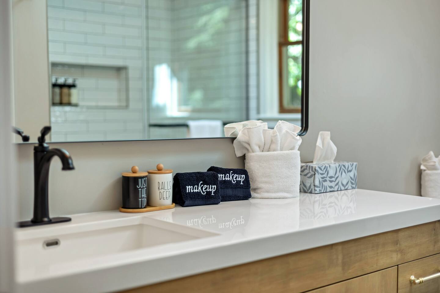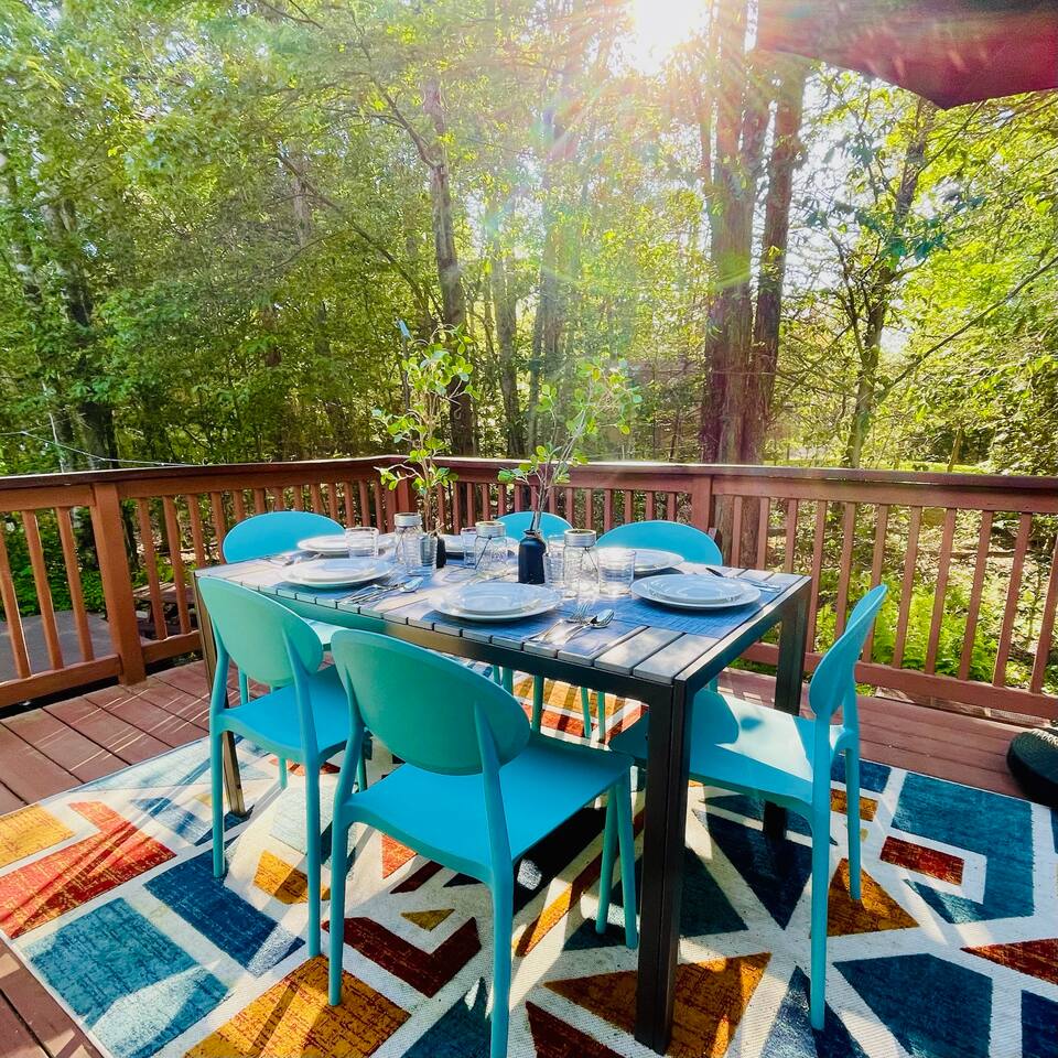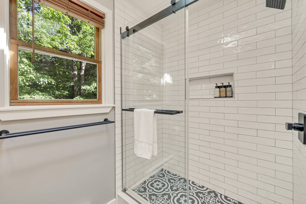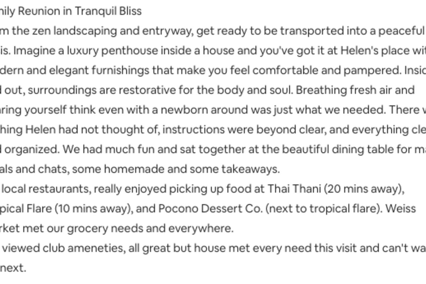MUST BE 25 OR OLDER TO BOOK. Please take a tour through this spacious two-floor oasis to familiarize yourself with all the comforts and amenities it offers. The best place to start is the majestic open-concept design living area on the main floor. The home's heartbeat features a relaxing living room leading into the fully equipped kitchen and an inviting dining area. The same ambiance can be felt in the lower-level recreation room with the intimate pellet stove, offering an entertaining atmosphere with numerous fun amenities and spaces. Immerse yourself in the natural beauty of the area and create unforgettable memories at our vacation home. With easy access to local outfitters, you can experience the best of the great outdoors, from horseback riding to kayaking, all while enjoying the comfort and luxury of your own private oasis You don't have to leave the property to enjoy the beauty of the Poconos. Step out on the spacious deck to soak up the sun, catch a breath of fresh air, and enjoy an al fresco meal, before going down to the backyard with the luxurious hot tub and a magical fire pit! Let's dive deeper into the rich amenity list of our gorgeous getaway. ★ LOCATION ★ We are conveniently located close to many of the area's attractions. ✔ Pocono Raceway: 22-minute drive ✔ Camelback Resort: 18-minute drive ✔ Jack Frost Ski Resort: 30-minute drive ✔ Great Wolf Lodge Water Park: 17-minute drive ✔ Kalahari: 13-minute drive ✔ Tobyhanna State Park: 8-minute drive When you've had enough of the exploring the nearby attractions, come back to Pocono Farms and enjoy the fun amenities at the clubhouse: 0.6 miles away ★ LIVING & RECREATION ROOM ★ The living room is a part of the upper-floor open-concept design area. See what the chef is up to, help them set the table, or unwind on the comfortable sofa by the intimate fireplace. ✔ Comfortable L-Shaped Sofa with Pillows ✔ Smart TV ✔ Indoor Fireplace ✔ Comfy Accent Chairs ✔ Coffee Tables ✔ Designer Reading Lamps When you've had enough of the outdoors, retreat to the recreation room on the lower level, where you'll discover many entertaining amenities to have hours of fun with your family and friends. ✔ Cozy Sofa with Pillows (can be converted into a Queen-Sofa Bed) ✔ Smart TV ✔ Foosball Table ✔ Chess/Checkers Table ✔ Board Games ✔ Pellet Stove/Fireplace ✔ Access to the Backyard ★ KITCHEN & DINING ★ The fully equipped kitchen features modern appliances for preparing delicious snacks, breakfasts, or three-course gourmet dinners. Ample countertops and the central kitchen island offer plenty of room to unleash your cooking creativity. ✔ Microwave ✔ Stove ✔ Oven ✔ Toaster ✔ Blender ✔ Air Fryer ✔ Keurig Coffee Maker (Complimentary K-Cups) ✔ Hot Water Kettle ✔ Refrigerators/Freezer ✔ Dishwasher ✔ Sink - Hot & Cold Water ✔ Plates ✔ Glasses ✔ Silverware ✔ Pots & Pans Unwind and catch up with your loved ones on the lavish deck or in the backyard while the food is getting ready. When done, serve it on the dining table and enjoy a delicious meal in an inviting and warm atmosphere. ✔ Dining Table with Seating for 8 ✔ Waterfall Kitchen Island with Seating for 4 ✔ Access to the Back Deck ★ SLEEPING ARRANGEMENTS – 5 BEDROOMS ★ Five tastefully furnished bedrooms are designed to provide hotel-like comfort and convenience needed to relax and rest so you can remain energized and do everything you have planned the next day. ♛ Master Bedroom (Main Floor): King-Size Bed, HDTV, Ensuite Bathroom, Workspace (Desk, Chair, Lamp) ♛ Bedroom 2 (Main Floor): Queen-Size Bed, HDTV ♛ Bedroom 3 (Lower Floor): Queen-Size Bed, HDTV ♛ Bedroom 4 (Lower Floor): Bunk Bed (Double over Two Twins), HDTV ♛ Bedroom 5: Queen-Size Bed All bedrooms come with a similar set of amenities. ✔ Premium Pillows, Linens, and Sheets (additional sets for the sofa beds) ✔ HDTVs (all Bedrooms except #5) ✔ Ceiling Fans (all Bedrooms except Master and #4) ✔ Closets with Hangers and Shelves (all bedrooms except #5) ✔ Night Stands with Reading Lamps ✔ Blackout Curtains ★ BATHROOMS ★ The accommodating house features three full bathrooms stocked with essential toiletries and pampering towels to ensure a carefree stay. ✔ Japanese Soaking Tub with a Walk-In Shower (Master Bath) ✔ Bathtub with a Shower ✔ Vanity (Double in the Master Bath) ✔ Towels ✔ Hair Dryer ✔ Toilet ✔ Essential Toiletries ★ DECK & BACKYARD ★ A stunning getaway would not be complete without a private space where you can take in tranquility, catch a breath of fresh air, relax in the luxurious hot tub, and enjoy a refreshing drink while marveling at the gorgeous surroundings. Let the designated master work their magic on the grill before gathering for an unforgettable al fresco meal worthy of the most praised restaurants. ✔ Luxury Hot Tub with a cover ✔ Fire Pit with Surrounding Seating ✔ Life size chess board ✔ Picnic Table with Benches ✔ Upper-Floor Patio (Dining Table with Benches + Parasol + Propane Grill) As the sun goes down, sit around the magical fire pit to share stories and marvel at the starry sky. Please let us know if you have any questions regarding our retreat. Happy Travels!