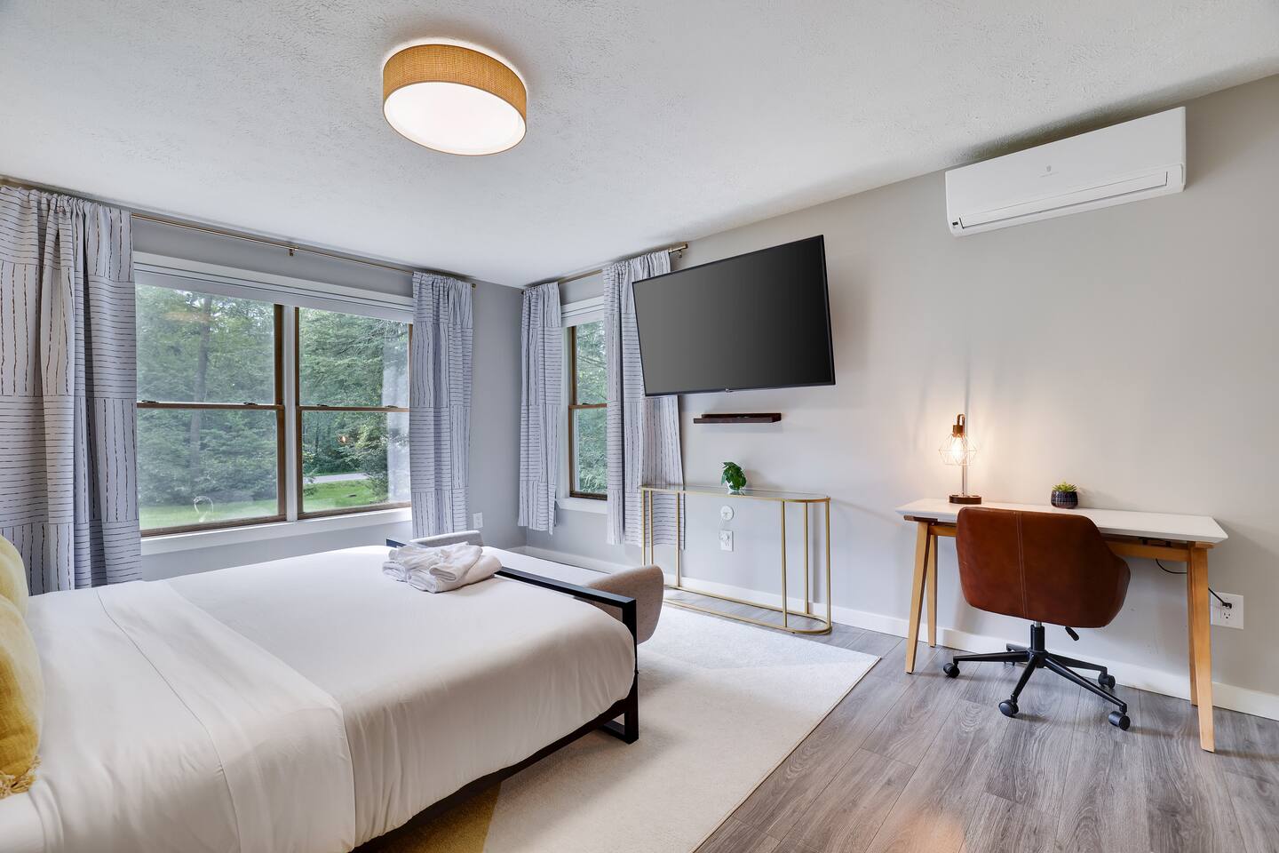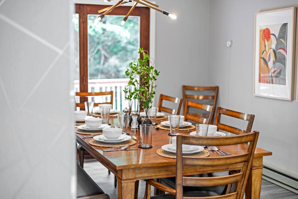 The house is exclusively yours, without interruption during your stay, so relax, unwind, and make yourself at home. Other than the already mentioned amenities, our home also features the following: ✔ High-Speed Wi-Fi ✔ Self Check-In (Door Code) ✔ Air Conditioning (Mini-Splits in Dining/Living Rooms and Master Bedroom) ✔ Heating ✔ Children's Amenities (Pack' n Play, High Chair, Fireplace Guards) ✔ Laundry Room (Washer/Dryer, Iron/Board, Detergent) ✔ Beach/Hot Tub Towels ✔ Pickleball Paddles ✔ Free Parking ★ POCONO FARMS COUNTRY CLUB COMMUNITY ★ The home is a part of the upscale Pocono Farms Country Club, with outstanding facilities that you can access with SIX complimentary passes (required for guests 5 years of age and older) included with the reservation for the entire stay! If you need additional passes, you may purchase them at the pool for $10 per person per day. ✔ Private Lake Beach (Memorial to Labor Day Daily 11 am to 7 pm) ✔ Kayaking/Paddle Boarding (May-August Wednesday to Sunday 11 am to 6 pm) - water quality permitting for your safety ✔ Olympic Sized Swimming Pool (May-August Daily 11 am to 7 pm) ✔ Playground fountains/water play area ✔ Tennis (bring your own rackets and balls) ✔ Beach Volleyball (bring your own ball) ✔ Pickle ball (4 paddles and balls in the recreation room downstairs by TV) ✔ Basketball (bring your own ball) ✔ Playground ✔ Lakeside Grill and Pub ✔ 18-Hole Golf Course (additional fee required, paid on-site) ✔ Fitness Center (additional fee required, paid on-site)