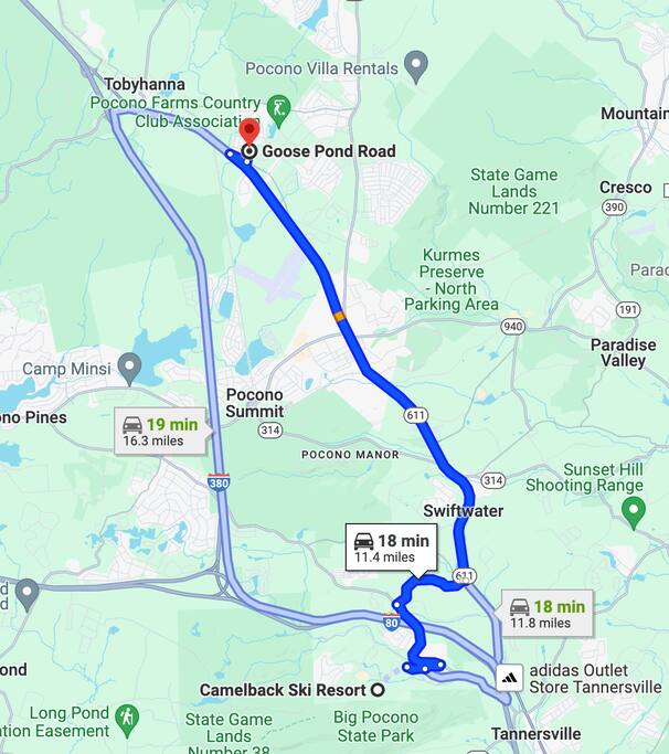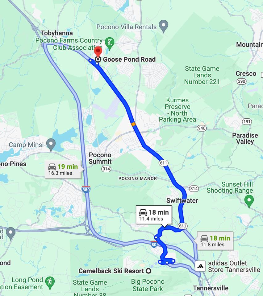 We recommend you arrive by car as it will give you much freedom to explore and enjoy the beautiful resort-like community and the entire Poconos Mountain area. As you already know, we offer free driveway parking for three or more cars.