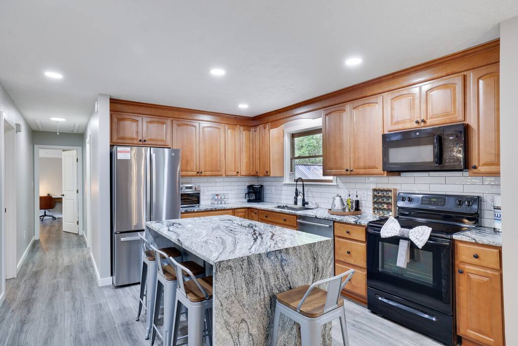 ★ ADDITIONAL INFORMATION: STAIRS, ACCESSIBILITY, SAFETY, CHILDREN★ Thank you for considering our home for your stay! We want to make sure you have a pleasant and safe experience during your time here. As you plan your trip, we'd like to inform you that our property features stairs. ✔ 3 Steps to the Front Door ✔ 7 Steps to the Main Level ✔ 7 Steps to the Lower Level Please consider your mobility needs, as the stairs are the primary access to different parts of the house. If you are traveling with young children, please supervise them around the stairs at all times since we don't have safety gates for the stairs in the house. We understand that stairs might not suit everyone, and we want to be transparent about their presence in our home. If you have any questions or concerns regarding the stairs or need additional information to make an informed decision, please feel free to contact us. ★ CLEANING & SANITIZATION ★ Health, safety, and well-being of our guests are of utmost importance. For this reason, we use a thorough cleaning process after each check-out. ★ PETS POLICY ★ ✔ We welcome dogs up to 50 lbs with a fee of $100 per pet per stay, limit 2. ✔ WE DO NOT ALLOW ANY PETS OTHER THAN DOGS. ✔ Pets should not be left unattended in the house, unless housed in its own crate. ✔ We kindly request that you use pet blanket provided on the furniture for your pets. ✔ Pets are not allowed in the pool or in the hot tub. ✔ Please clean up after your pets and dispose of waste properly. We provide waste bags. ✔ Do not use kitchen dishes for your pets. There are bowls provided for your pets. ✔ Please be cautious of the presence of wild animals and keep an eye on your pets. There have been sightings of deer and a bear in the neighborhood. ★ NO SMOKING INSIDE ★ Please refrain from smoking inside the home! Any smoking evidence will incur a fee for odor removal and furniture cleaning. ★ NO PARTIES/EVENTS ★ We kindly ask you to treat our home as your own to preserve its pristine condition for future guests and your return visits. Thank you very much for your understanding.