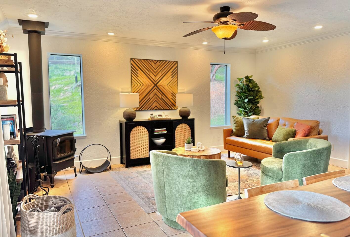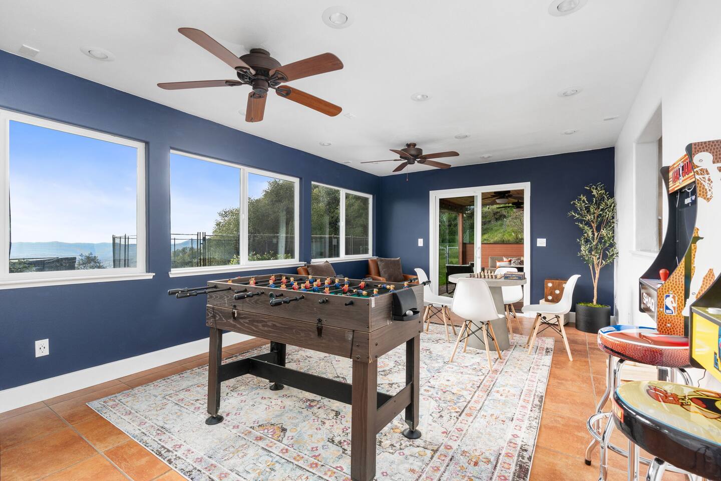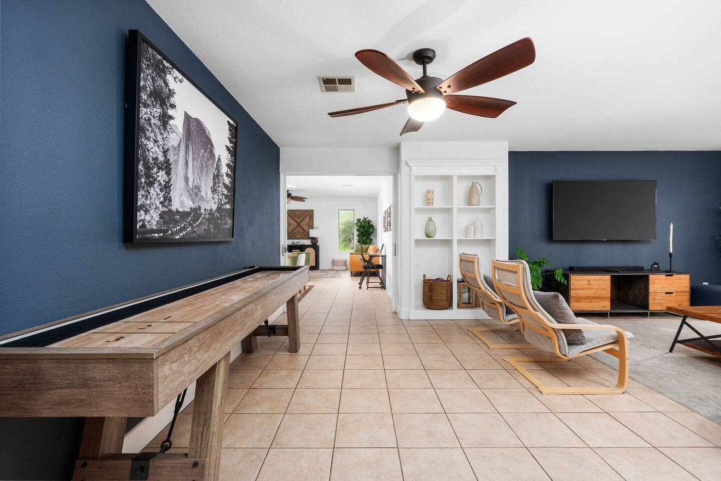 IMPORTANT: GUEST MUST BE 25 OR OLDER TO BOOK. Your Sierra Nevada Oasis Awaits: Spacious Retreat Near Yosemite & Bass Lake Escape to this sprawling single-level sanctuary, perfectly positioned for exploring the majesty of Yosemite National Park and the refreshing waters of Bass Lake. From the moment you step inside, you'll discover a haven of comfort, entertainment, and breathtaking natural beauty, designed for unforgettable getaways. ★ LIVING ROOM ★ The adventure begins in the welcoming living room, the true heartbeat of the home. Picture yourself sinking into the cozy sofa (which also converts into a queen-size bed with a comfortable memory foam mattress for flexible sleeping arrangements) after a day of exploring. Here, you can enjoy a movie on the impressive 82" Smart TV or engage in some friendly competition with the shuffleboard. This is where relaxation and fun effortlessly combine. ✔ Cozy Sofa with Pillows (can be converted into a Queen-Sofa Bed) ✔ Smart 82" TV ✔ Shuffle Board ✔ Board Games The same ambiance can be felt in the family room with the intimate wood-burning stove, where you can enjoy the indoor-outdoor entertaining area by stepping to the back patio, overlooking the pool and the distant mountain range. Immerse yourself in the natural beauty of the area and create unforgettable memories at our vacation home. With easy access to local outfitters, you can experience the best of the great outdoors, from hiking to fly fishing to kayaking, all while enjoying the comfort and luxury of your own private oasis You don't have to leave the property to enjoy the beauty of the Sierra Mountains. Step out on the spacious back yard to soak up the sun, catch a breath of fresh air, and enjoy an al fresco meal, before stepping into the luxurious hot tub or a cool dip into the refreshing pool! Let's dive deeper into the rich amenity list of our gorgeous getaway. The living room is the lively part of the home, where you can kick up your feet to enjoy your favorite movie, or play a game of shuffle board. ★ FAMILY ROOM ★ Flow seamlessly into the inviting family room, where the ambiance is warmed by an intimate wood-burning stove (available November to February, air-quality permitting). Large picturesque sliding glass doors frame stunning views of the distant mountain range and open directly onto the back patio, creating a perfect indoor-outdoor entertaining area overlooking the pool. ✔ Comfortable Leather Sofa with Pillows ✔ Indoor Wood Burning Stove (November to February air-quality permitting) ✔ Comfy Swivel Accent Chairs ✔ Coffee Table ✔ Workspace (Foldable Desk, Chair in Master Closet) ★ KITCHEN & DINING ★ Prepare anything from quick snacks to gourmet feasts in the fully equipped kitchen. Modern appliances, ample countertops, and a kitchen peninsula with two comfortable stools, perfect for keeping the chef company or enjoying your morning coffee. We provide everything you need to unleash your culinary creativity. ✔ Microwave ✔ Stove ✔ Oven ✔ Toaster ✔ Blender ✔ Air Fryer ✔ Keurig Coffee Maker (Complimentary K-Cups) ✔ French Press ✔ Hot Water Kettle ✔ Refrigerators/Freezer ✔ Dishwasher ✔ Sink - Hot & Cold Water ✔ Plates ✔ Glasses ✔ Silverware ✔ Pots & Pans ★ GAME ROOM ★ Adjacent to the kitchen, the dedicated game room is your hub for hours of enjoyment for everyone. Challenge your group to: ✔ Foosball ✔ Game of Dart ✔ Arcade-Style Games (Pac-Man and NBA) ✔ Table and Chairs for Card Games or Board Games ★ SLEEPING ARRANGEMENT ★ After a day of adventure, retreat to one of three tastefully furnished bedrooms, each designed for hotel-like comfort and a restful night's sleep so you can remain energized and do everything you have planned the next day. ♛ Master Bedroom: King-Size Bed, Loveseat, Ensuite Bathroom ♛ Bedroom 2: Queen-Size Bed ♛ Bedroom 3: Queen-Size Bed ♛ Living Room: Queen-Size Sofa Bed (memory foam) All bedrooms are thoughtfully appointed with: ✔ Premium Pillows, Linens, and Sheets (additional sets for the sofa beds) ✔ Ceiling Fans ✔ Closets with Hangers and Shelves ✔ Night Stands with Reading Lamps ✔ Induction Phone Chargers ✔ Blackout Curtains ★ BATHROOMS ★ The home features two full bathrooms stocked with essential toiletries and pampering towels to ensure a carefree stay. ✔ Walk-In Shower (Master Bath) ✔ Bathtub with a Shower (Hall Bath) ✔ Vanity ✔ Towels ✔ Hair Dryer ✔ Toilet ✔ Essential Toiletries ★ DECK & BACKYARD ★ You don't have to leave the property to experience the stunning beauty of the Sierra Mountains. Step out into the spacious backyard and deck area – your personal oasis for relaxation and fun. Soak up the California sun, breathe in the fresh mountain air, and enjoy an al fresco meal at the dining table with chairs. Fire up the propane BBQ grill for a delicious cookout. Take a refreshing dip in the seasonal pool (unheated, typically best from July to October). As evening approaches, unwind in the luxurious hot tub, marveling at the sunset painting the sky before it fills with a canopy of stars. ✔ Luxury Hot Tub ✔ Pool ✔ Propane BBQ Grill ✔ Dining Table with Chairs Please let us know if you have any questions regarding our retreat. Happy Travels!
